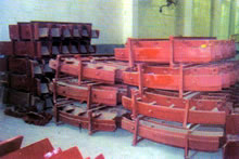 | 中速磨煤机主要用于燃煤电厂烯料粉磨,也适应于高炉喷煤和建材、化工、纺织煤粉燃烧装置或煤粉制作。对含有一定成分的烟煤、次烟煤以及部分褐煤均有良好的适应性。中速磨煤主要有给煤管、分离器、磨盘装置、磨辊装置、加压装置、传动装置和机壳组成。原煤经给煤落入磨盘,磨盘由传动装置带动旋转,磨辊在受加压装置的压力下由磨盘带动绕自身轴作滚动运动。落在磨盘上的原煤在离心力作用下抛向四周,经磨辊辗压粉碎。辗碎的煤粉由干燥气流带到分离器筛选,合格煤粉随气流带出磨煤机,不合适的煤粉落回到磨盘上重新碾磨。 | ||